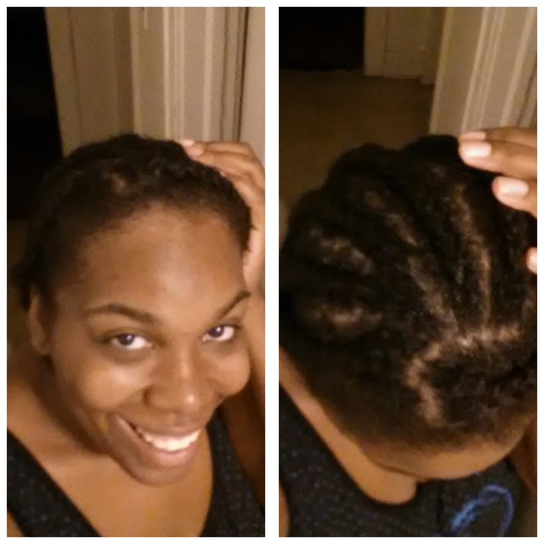 Step 1: After Washing, I detangle with the LOC method and braid my hair in about 7-8 corn rows, no I don’t use a comb to part my hair